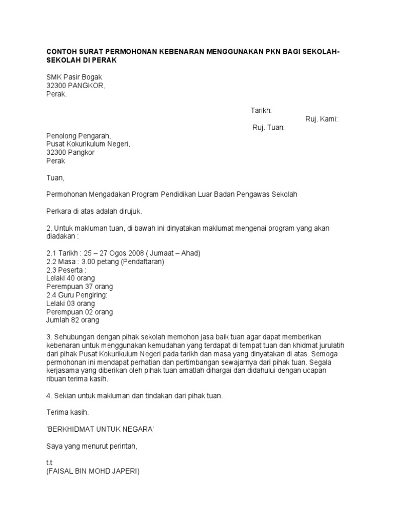 Contoh Surat Permohonan Kebenaran Menggunakan Pkn Bagi Sekolah Pdf