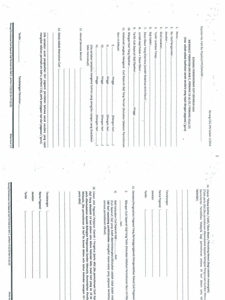 Kosong Borang Cuti Separuh Gaji Lampiran Ii Pdf